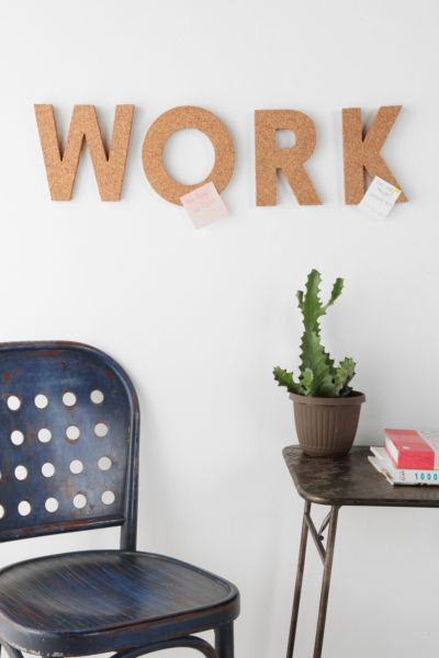 I could buy cork in bulk at Michael's/JoAnnes and cut letters out myself (using stencils). These letters are from Urban Outfitters.
